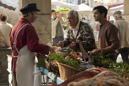But it’s the small boy, smelling the urchins with his eyes closed, that captures this stallholder, and he sells the basket to his mother. This is Hassan (Manish Dayal), as a boy.