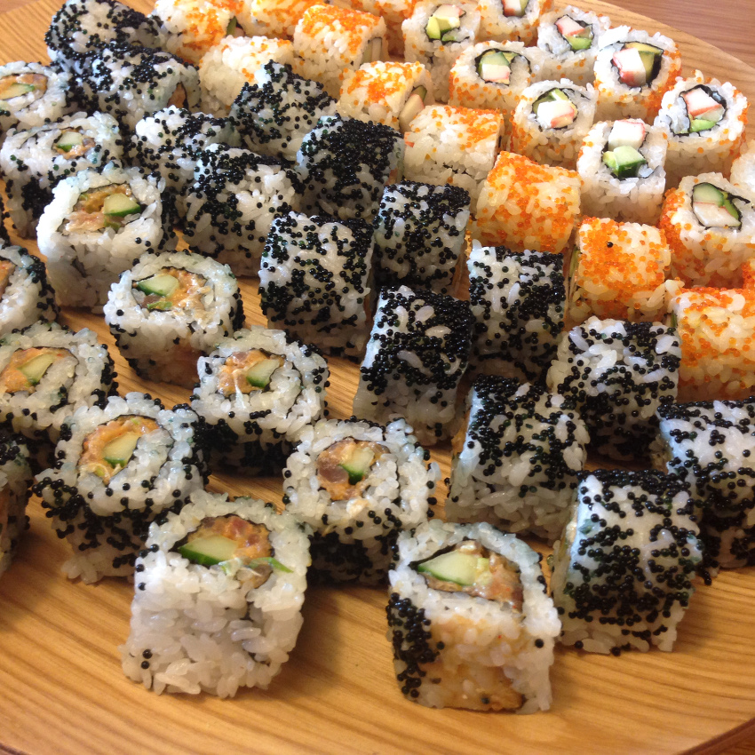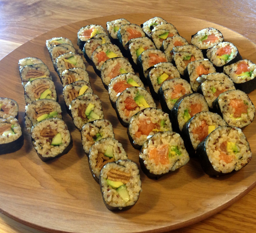 aburi salmon nigiri, California roll, kingfish nigiri, pickled ginger, quinoa, salmon nigiri, sushi, Sushi Planet, wasabi, yakitori
