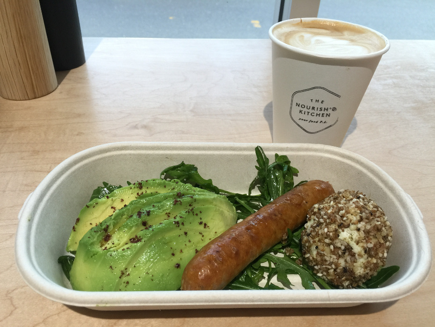 For breakfast you can choose from granola, chia pudding, quinoa porridge (these all looked very inviting) or you can ‘build your own’ breakfast, choosing from a range of tasty breakfast items, such as eggs pre-cooked in a variety of ways, smoked trout, vegetables – much of it standard breakfast fare but given the Nourish’d treatment. We chose to build our own as there were so many good options to choose from.