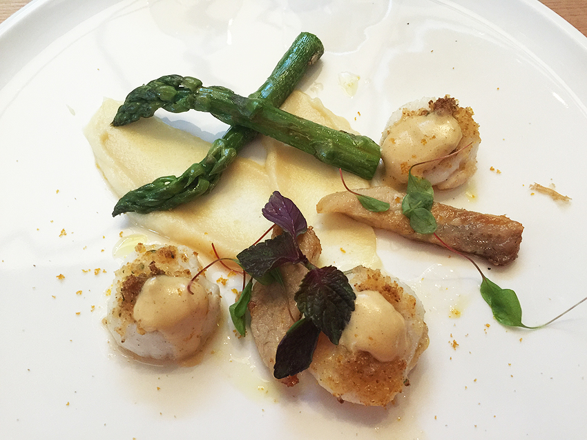 For entrée I had diver hand scallops with asparagus, pork jowl and hazelnut zabaglione. The scallops were large and meaty with good caramelisation.