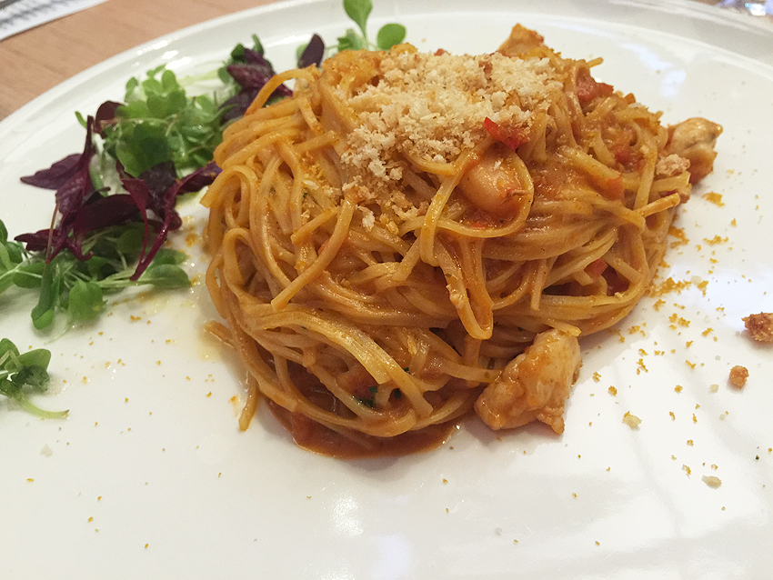 For mains I had fresh guitar string egg pasta with blue swimmer crab, roasted lobster sauce and bottega (salted, cured fish roe). I was very impressed with this dish. There were large meaty pieces of crab, with a light creamy sauce, full of lobster flavor with the bottega adding a crunch to the dish. The pasta is made on the premises and was cooked al dente. I did struggle to finish my plate – it certainly was a good sized serving!