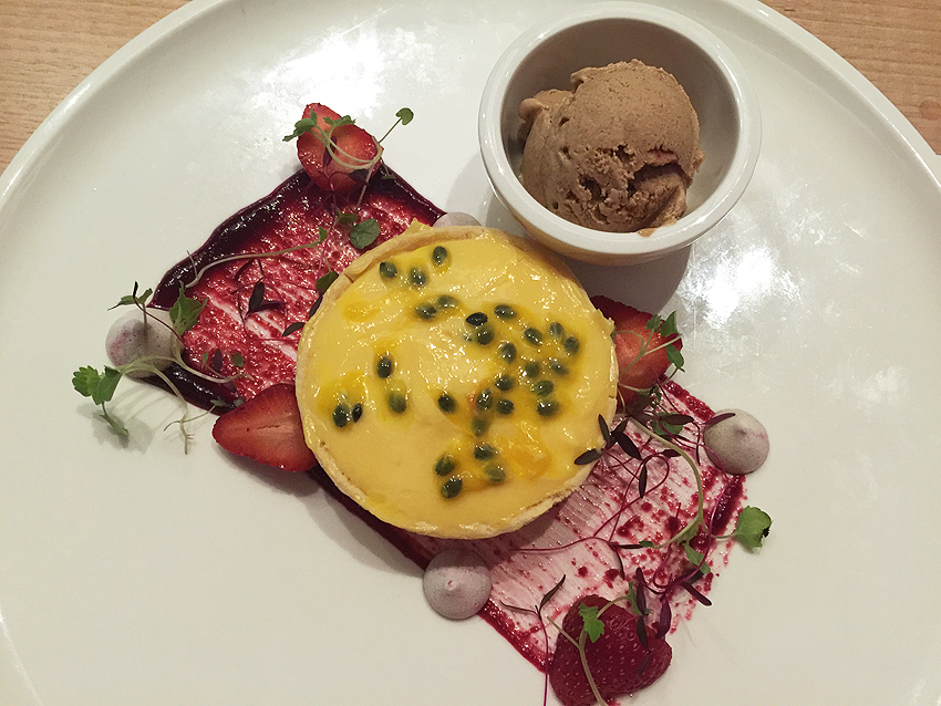 And for dessert passionfruit and lemon curd tart with clove, cinnamon, cognac icecream. I love lemon tarts – and the passionfruit was an excellent combination. The ice cream had quite a strong flavour.