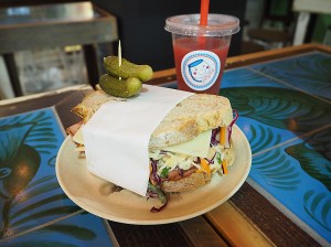 There were layers of pastrami, swiss cheese and coleslaw with the dressing dripping out the bottom as I held it up to my mouth. I managed it squish it together to take a big bite. The pickles were a nice addition on the top. This was paired with a cold pressed fresh juice of watermelon, strawberry and mint, which was cold and refreshing.