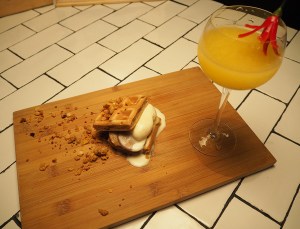 And the dessert cocktail was a ‘Captain’s Hot Daughter’ Angostura 5 year old, peach schnapps, mango, fresh lime juice, chilli. Fruity with a touch of chilli.