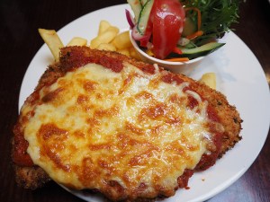 The schnitzels were $19 each plus extra for the sauces – $5.50 for mushroom and $5.90 for parmigiana, which we thought were a little high.