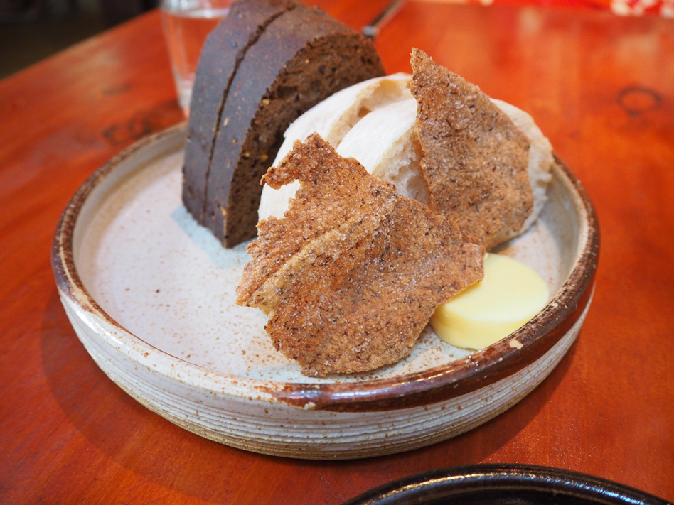 Before entrees arrive we receive a plate of three breads, all made on the premises, along with the butter. Yes, real butter! The breads are a rye, white ciabatta and a flaxseed cracker. All with different textures and soft and fresh.