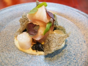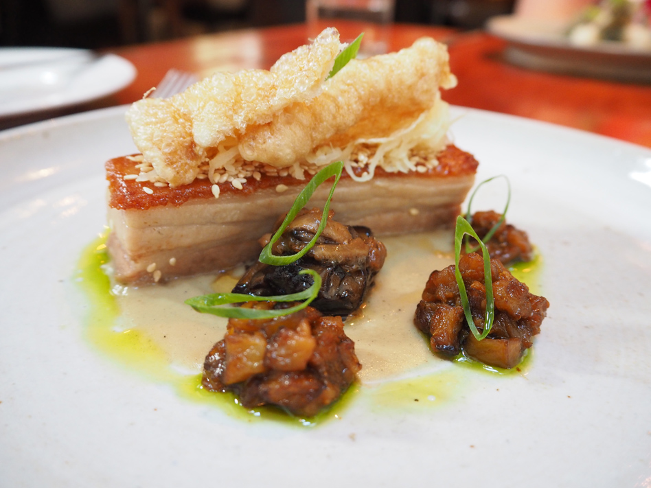 For entrée we had pork belly, sesame and smoked aubergine puree, shiitake mushrooms and onion oil. Just yummy! The pork was tender with crackling that crunched and extra scratchings on the top! The puree was delicate and the mushrooms added texture.