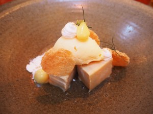 And beef and bone – hanger steak and marrow, sweet breads, turnip and tarragon. We asked for the steak to be cooked as the chef intended and it came out with a nice blush of pink. Once again excellent texture and freshness in the dish.