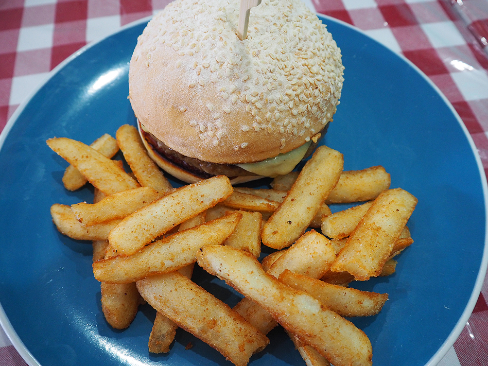 And our son enjoyed from the ‘Little Boppers’ kids menu, a cheeseburger with ketchup served with beer battered fries. He liked it!