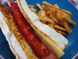 We enjoyed a ‘Hound Dog’ hot dog with melted cheese and sauce served with beer battered fries. A pretty standard hot dog with a nicely toasted bun and well cooked fries.