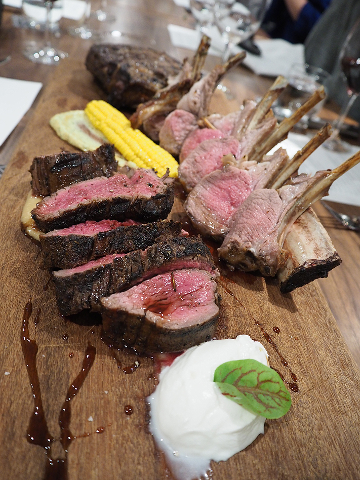 Paringa farms lamb cutlets, minted-mustard, sweet corn and Clare valley gold beef fillet with buffalo curd.