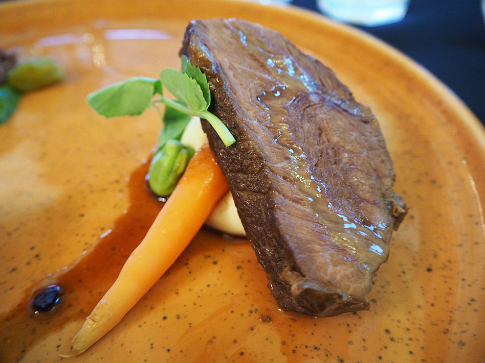 Carbonnade (meaning cooked in beer) of beef, dark beer braised beef cheek, potato mash, fava beans, Dutch carrots & jus served with Prancing Pony Amber Ale from the Adelaide Hills. This was my favourite dish as the beef just melted on your mouth.