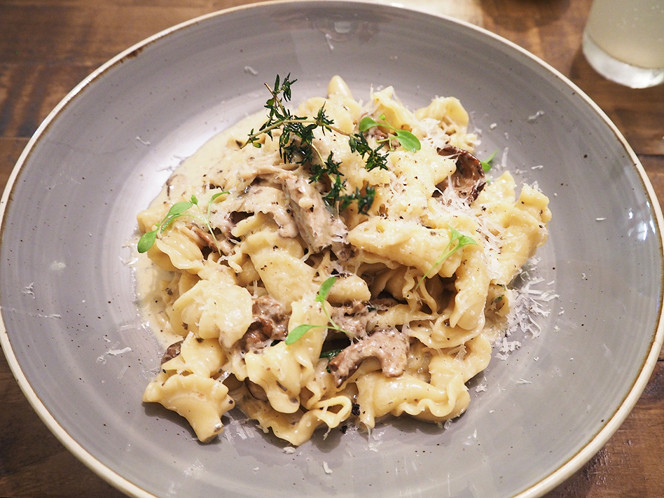 The other main course was gigli (pasta) with porcini, king oyster and shiitake mushrooms, truffle oil, thyme, a dash of cream with grated truffle cheese. Whether you’re vegetarian or not, the mushrooms in this dish are meaty enough to satisfy any customer. An aromatic, hearty dish just perfect for a winter’s evening.