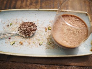 The Nutella semifreddo with Haigh’s hazelnuts was beautiful. The Nutella was served on a small spoon next to the semifreddo and it was suggested we eat a little of each together. It was cold, light and fluffy and very chocolaty!