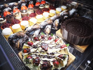 Petite gateau’s, cherry custard tart, lemon polenta cake, cannoli and a ‘bleeding heart’ are currently on offer but these will change regularly.