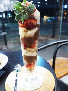 ‘Archie’s cookie crunch’ consists of layers of shortbread cookies, melted Nutella, fresh strawberries and cookies and cream ice cream.