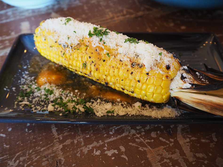 Whole cord on the cob with lime paprika butter and parmesan dust. I could eat a whole lot of these! Yum!