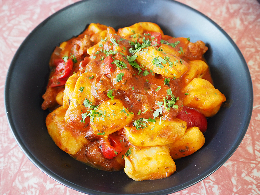 Gnocchi salsiccia – pork sausage, chilli, capsicum, cherry tomatoes, finished with a rich tomato sugo;