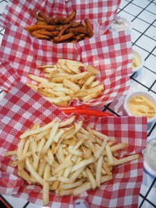 We sampled three types of fries on the menu; classic, shoe string and sweet potato. All hot and crispy. The sweet potato fries were a particular favourite, as I find not many places can perfect sweet potato fries! These were served with a variety of sauces to sample – there are 12 on the menu to try!