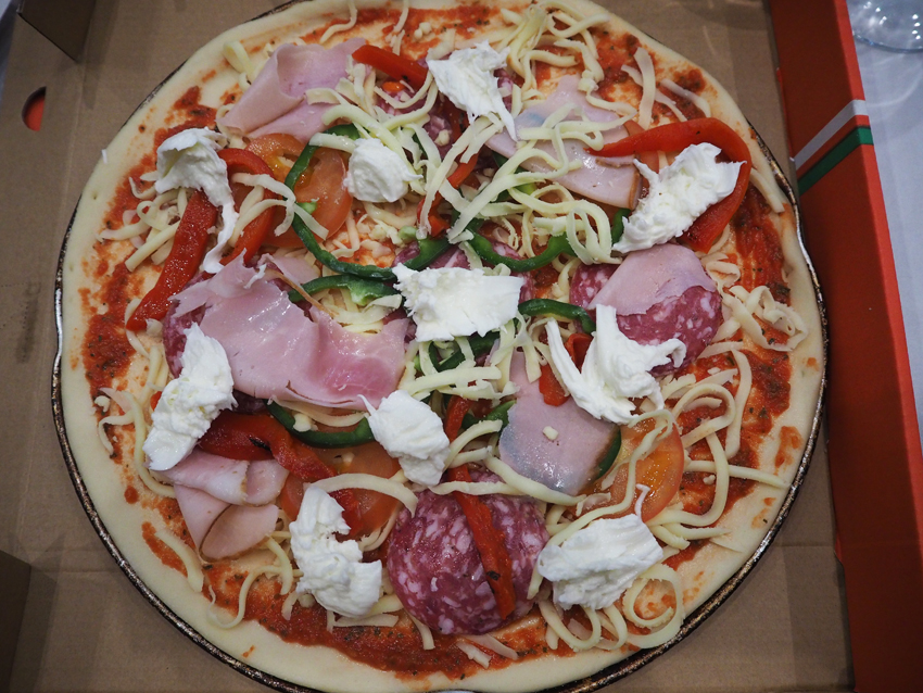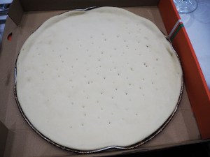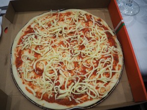I covered the base with tomato sauce and then I’m told to add cheese!