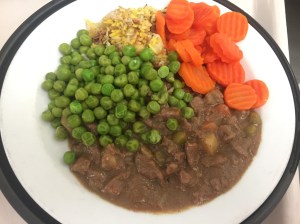Then I tried mixing some rice with the meat sauce. The rice was crispy, probably dried out, and crunchy. And the veg was barely warm.