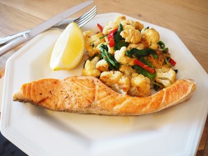 First up we sampled salmon with spiced cauliflower – an easy, one-pot meal.
